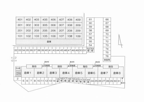 | 備考 | ■豪雨等により倉庫内部に浸水の恐れあり。入居者にて水害対応の家財保険に加入のこと。■NO.2~6は使用後に室内灯を消すこととし、蛍光灯の交換は借主負担とする。■ゴミ回収は各自で手配■仲介手数料:賃料1ヶ月分■駐車場1台3,300円 |